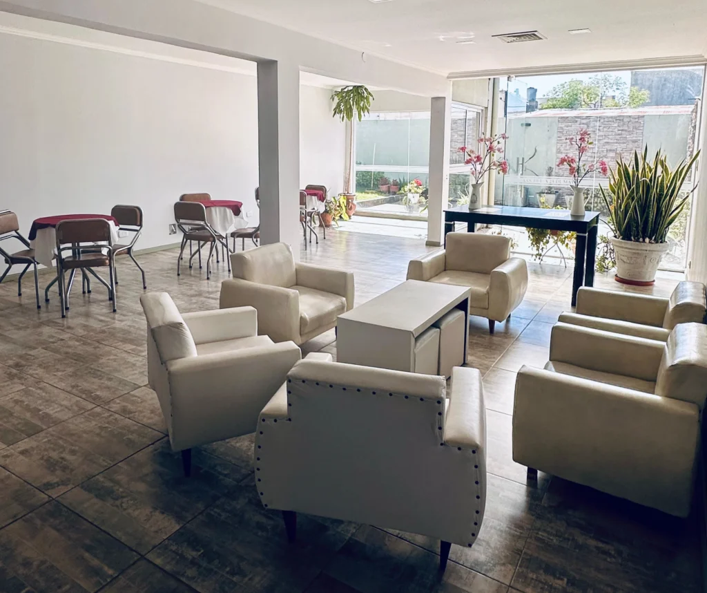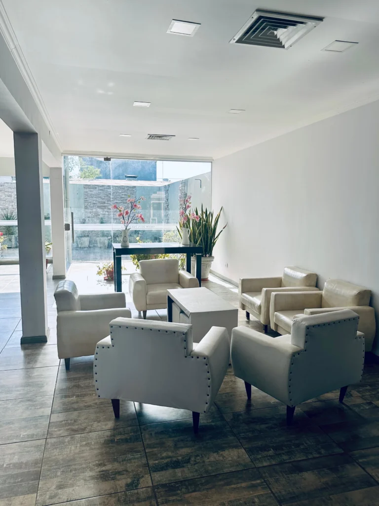- Mobiliario cómodo: sillas y sofás dispuestos para facilitar la estancia.
